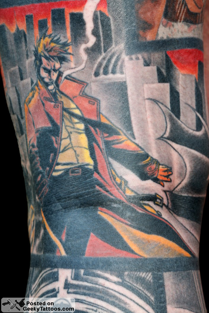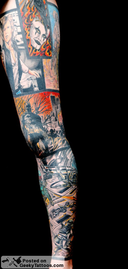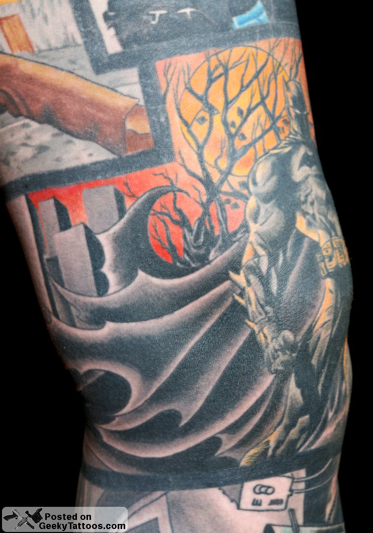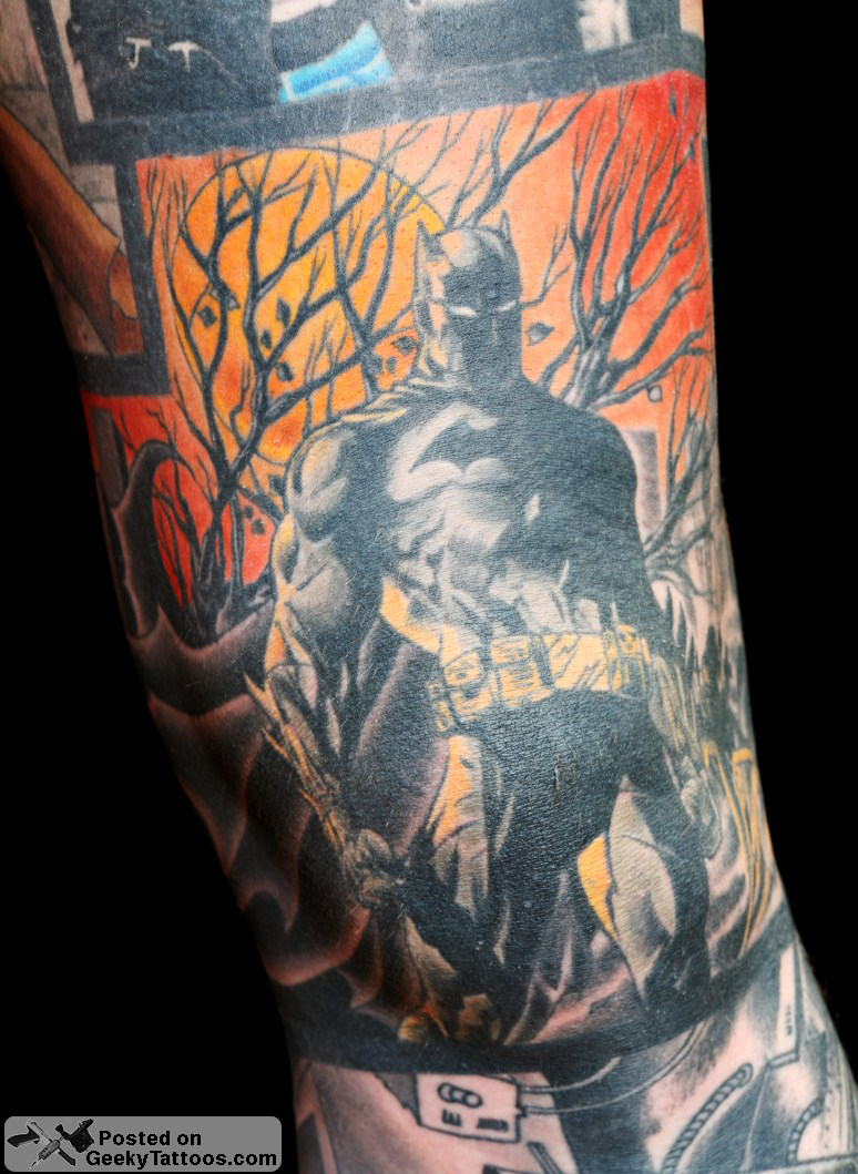 To complete the Sleeve I added the Batman and John Constantine (from Hellblazer comics) piece around my knee. Also done by Bara.