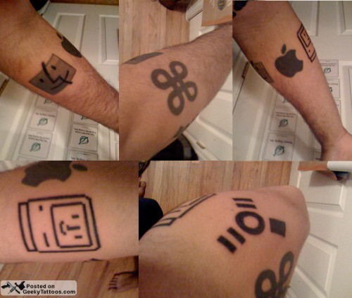 Check out Trevor’s tribute to old school Apple logos. Not only does he have the ring of Apple ink, he’s also got a Lego tattoo as well as a robot! Check them all out on his Flickr set.
