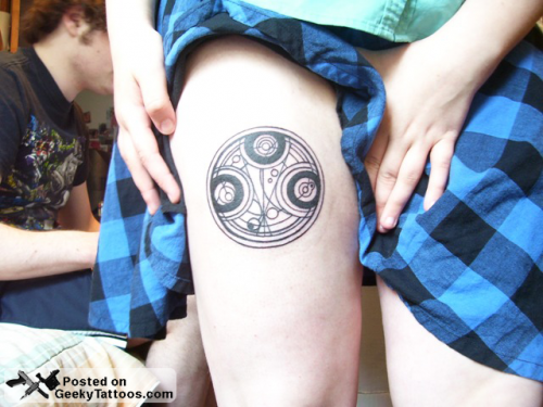 Check out Caelin’s Doctor Who thigh tattoo. She says this is just the first of many Doctor Who tattoos that she wants to get. She says that she go this tattoo because the “Time Lords are BAMFs”.