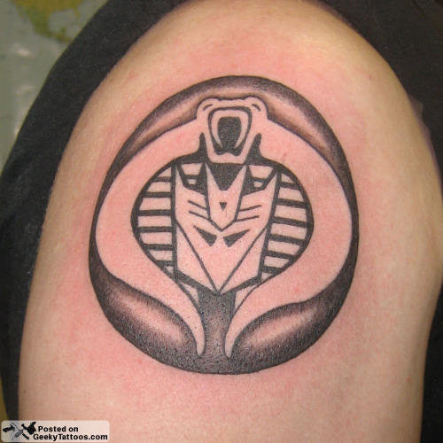 Why did Joe Levee get this Cobra/Decepticons tattoo? He said he felt he needed to increase his “geek cred”. Mission accomplished.