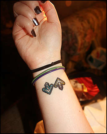 Even though I don’t play Dance Dance Revolution, it is still near and dear to my heart thanks to my involvement in Dance Dance Immolation. Here’s a nice subtle nod to the arrows that must be ingrained in all the minds of DDR players around the world. Kitty got it after spending 5 years in the DDR scene, having gotten started in 2003.