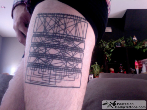 This is a tattoo I designed based on the wiring diagram from the Enigma Machine that was supposedly uncrackable, and used to encode messages during the second world war. The British mathematician, Alan Turing, cracked the code.