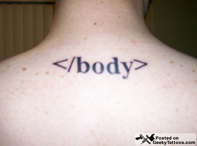 Andrew sends in his HTML </body> tag tattoo that he got for his 30th birthday.