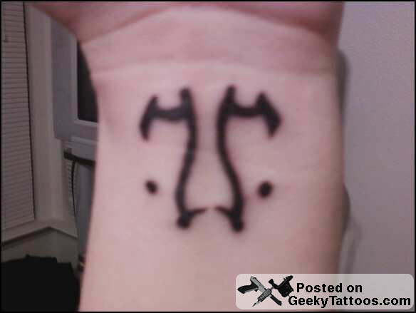 Susan sends in her Rorschach wrist tattoo from Watchmen. She says he is her favorite fiction character and this is her favorite tattoo! She also recommends: Watchmen and Philosophy: A Rorschach Test. Now if only they made ink that would shift and change!