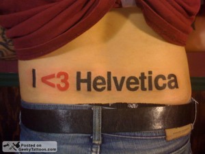 Helvetica has a posse…. C’mon, how many fonts out there have their own movie? And now Helvetica can lay another claim to fame, it’s been tattooed on someone.