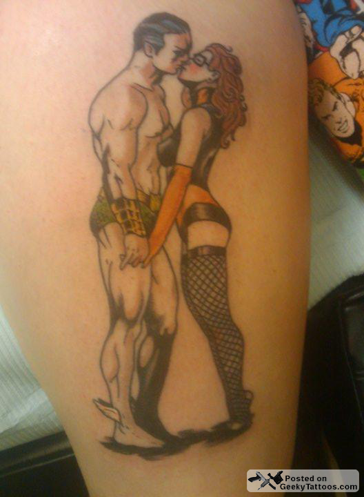 It’s not often you find a true Namor fan. Sad but true, Aquaman has a much catchier name. Regardless, Bradleigh says that Namor is her all time favorite comic book character. She even admits that she’s got a little crush on him! And much like I did with that yearbook photo of that cheerleader I liked, she did a little doctoring of a kissy-kissy picture to replace Sue Storm with herself and then tattooed it on her thigh. Hot! Tattoo was done by Chipp from Club Tattoo