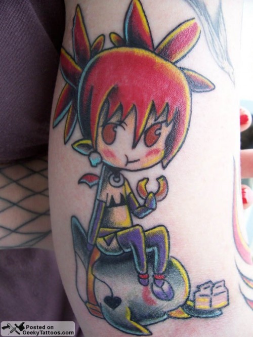 Kylee is no stranger to Geeky Tattoos. You might remember her Boba Fett tattoo that was previously posted. Now she’s gotten back to me with photos of her extensive geeky sleeve. With nods to Disgaea, Final Fantasy, X-Files, V For Vendetta, and Pink Floyd it’s easy to appreciate this geek badge of honor. I’ll leave the exercise of picking out which is which to you.