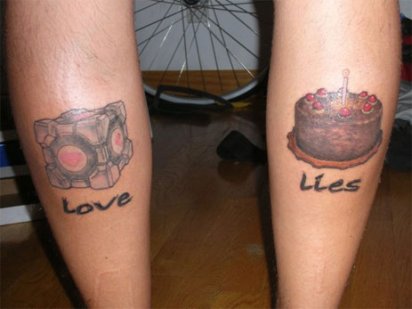 I loved playing Portal, it was quite possibly one of the best games to come around in recent times. It was a simple premise, but it generated quite a bit of following, as well as memes that continue to this day. I sit here writing this in my “The cake is a liar” shirt, and marvel at the extra step this unknown person has taken. I wasn’t able to find any info on how owns these lovely pieces of ink, or where they got them done, but they had to be shared and appreciated. If anyone has any info, drop a comment.