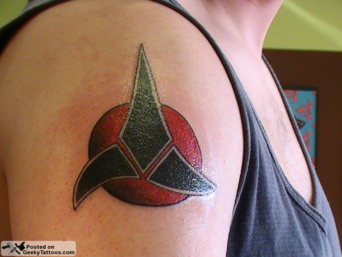 Figuring out your first tattoo can be quite a difficult task for some. For Mike it was pretty easy since he’s wanted the Klingon tattoo you see above since he was in high school (he’s 32 now). The only problem he had was deciding on a location. Eventually he went to Lacey’s Finest in Olympia, Washington and George inked the Klingon Empire logo you see above.