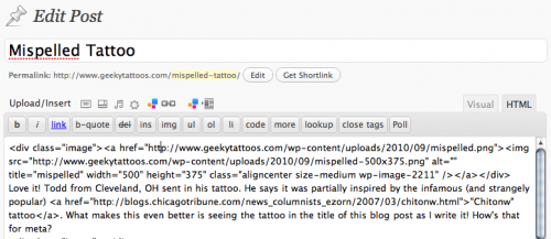 Love it! Todd from Cleveland, OH sent in his tattoo. He says it was partially inspired by the infamous (and strangely popular) “Chitonw” tattoo. What makes this even better is seeing the tattoo in the title of this blog post as I write it! How’s that for meta?
