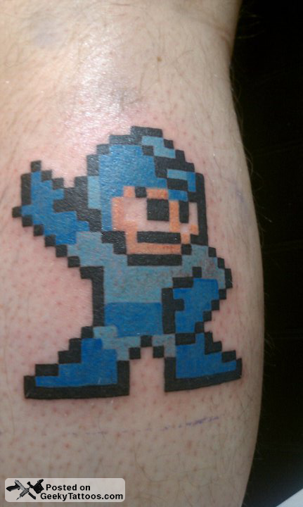 Brandon’s back with a new geeky tattoo. Remember his Triforce and USB tattoos? Now he’s added Mega Man to his collection. I really think he should get together with this guy and make Mega Man dance!
