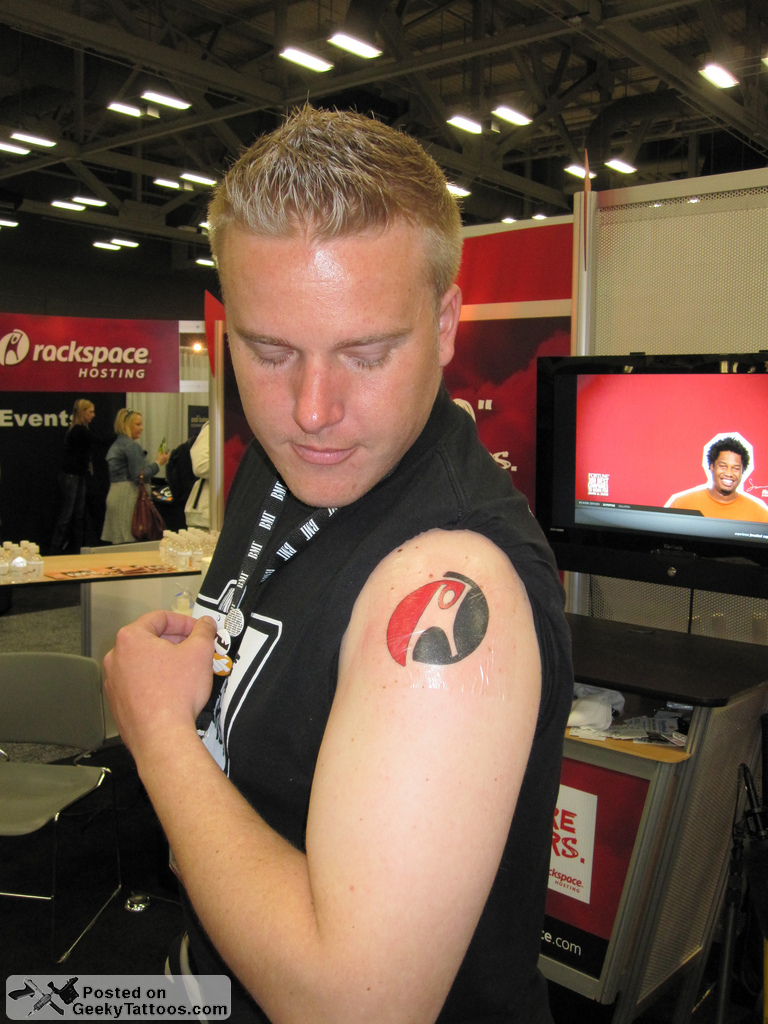 I just got back from SXSW this year and while I was there I happened to be on the floor of the trade show in time to catch the above tattoo just getting finished. (Big thanks to @Thweetch for giving me the heads up.) The tattoo is the logo for Rackspace. Rackspace is one of the best web hosting companies out there and they do both cloud hosting and the typical managed server hosting. Geeky Tattoos is hosted with them, so naturally I’m a big fan. Not big enough to get a tattoo of their logo, but maybe if they give me some free hosting we’ll talk. :)