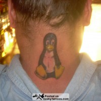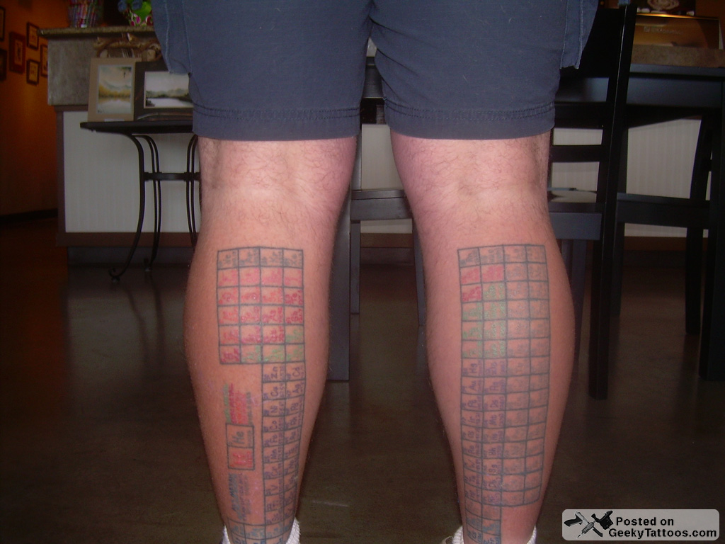 Mahendra sends in a periodic table tattoo on his calves and an accompanying Tux tattoo on the back of his neck:
