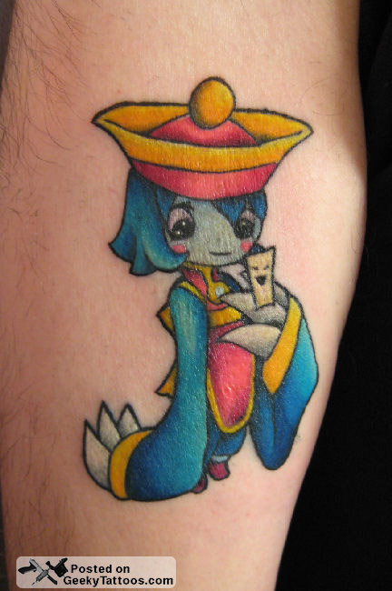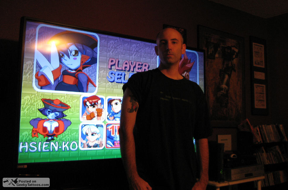 I wanted to get a tattoo for years and couldn’t quite settle on something. Being a geek at heart, I knew it had to be something video game related. Everything finally came together recently for me to get a chibi Hsien-Ko tattoo. Hsien-Ko is a Capcom Dark Stalkers character and one of the coolest Capcom fighters on Super Puzzle Fighter 2 Turbo (Playstation game that my wife and I have been playing since the mid 90s that was recently re-released for the Xbox 360 and PS3). I found this wicked artist Angelica at Happily Green who specializes in the form of chibi and she created the perfect image for me. After some local searching I found the perfect tat artist Jessie Cleary at Electric Expressions in New Orleans. She really gave it some depth and lively detail. I couldn’t be happier with the way it turned out.