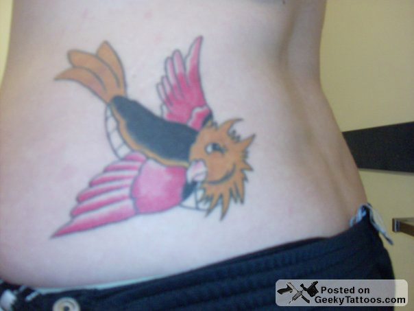 And last but not least, Christelle shows off her Spearrow Pokemon tattoo which is a great play on the traditional sparrow tattoos: