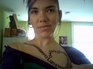 She says she got this done for her 25th birthday and that it is her favorite of all ten tattoos on her body. A lot of people have asked her why it was only 46 digits. Her answer, “because that is what fit”. Another fun fact is that it is not in a font, but rather in the handwriting of a girl she was dating at the time.
