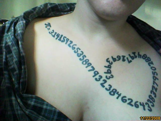 Pi tattoos are pretty common amongst physics and math geeks and they’re usually the symbol or a string of digits. Scuffy took the typical string of digits but did something awesome and original with it. Well done!