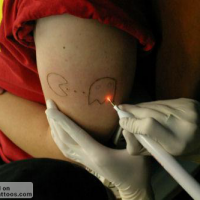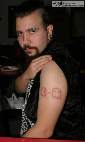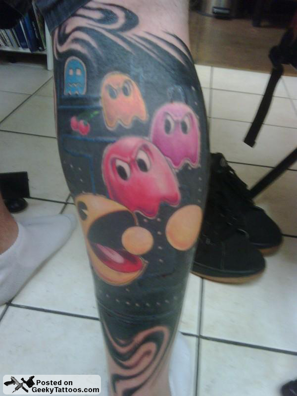 And on his leg is a really nice Pac-Man tattoo.