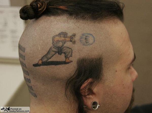 There’s a good chance you’ve seen the above tattoo of Ryu from Street Fighter somewhere on the internet before. Heck, you might have even seen it on here. However, until recently I could never find out who the owner of this infamous ink was. After months of searching, he was finally found and boy does he have some geeky tattoos!