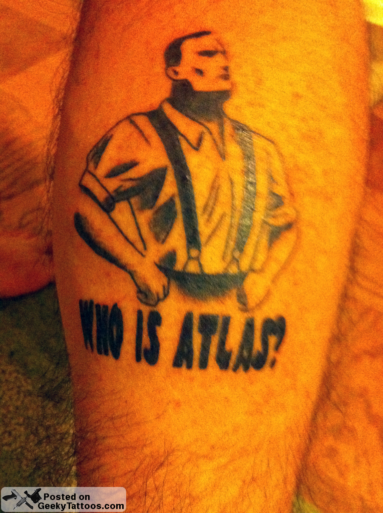 ou got a tattoo of a video game based primarily on a book that's sold millions upon millions upon millions over 50 years? Won't most people think of Atlas Shrugged first? Who is John Galt?