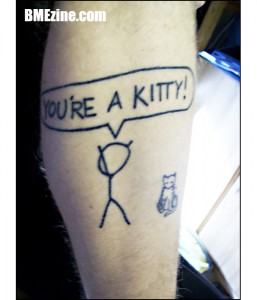 UPDATE 2: Kitty Stryker also sent in a photo of her xkcd inspired tattoo. She went to Sacred Rose in Berkeley, CA to get the last frame of one of my personal favorites, Grownups.