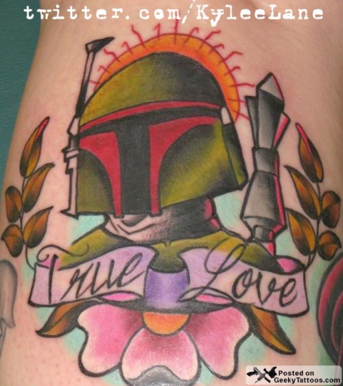 Kylee Lane sent in her Boba Fett tattoo above. Not sure how her husband feels about competing with someone as awesome as Boba Fett, but my guess is that he’s secretly glad that Boba is a fictional character.