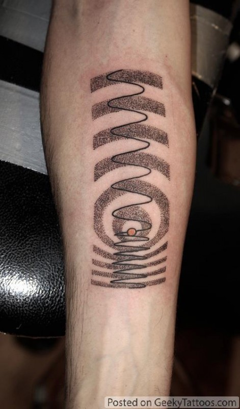 When Gordie Cavill won 2 hours worth of tattooing in a Facebook contest he decided he wanted something geeky. Passing up the normal dopamine and serotonin tattoos, as well as the equations and other common geeky tattoos, he decided on a graphical representation of the Doppler effect. I’d say that was a good choice.