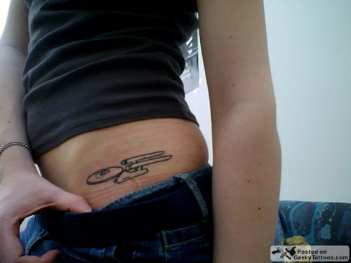 That was bad, I know. Perhaps I should have gone with the one about boldly going where no man had gone before or maybe the one about… err nevermind this is supposed to be a work-safe site. Bad puns and pickup lines aside, check out Mary’s hip spaceship tattoos. (Yes, I went there, quit your groaning)