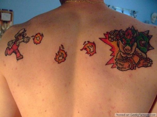 Hello my name is Jimy Burke I’ve loved super mario since I was a kid and wanted a really unique tattoo. The tattoo artist was named big ron out of the tampa bay area, which is where I’m from also, he jump between shops before I lost touch with him.