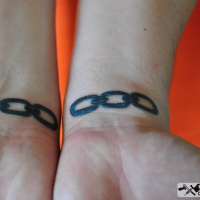 They could be either, in my opinion, except for the location. The player's character in Bioshock is almost never seen, but any time you wield an object, you see your hand, including the wrist. The chains are directly on the wrist. And personally, I love that tattoo – and Bioshock!