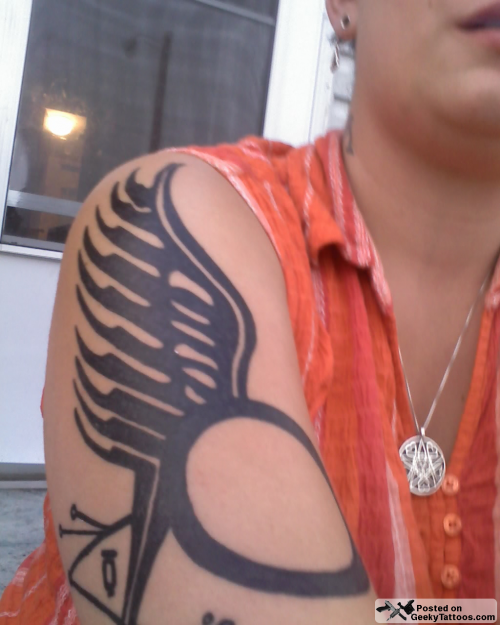thats sooo fucking awesome! i also have a tattoo but is a simbol of the amount of respect that i have for the kara thrace actress and character (but i'm a man)… i have the same tatto as kara thrace on my left arm