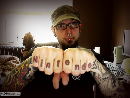 No, I’m not talking about those cramps you get in your hands when you’ve been sitting in front of the console too long trying to beat Contra for the 2,174th time. (What? I’m the only one that still has trouble beating that stupid boss on level 2?) I’m talking about Abject’s awesome Nintendo knuckles tattoo. He writes: