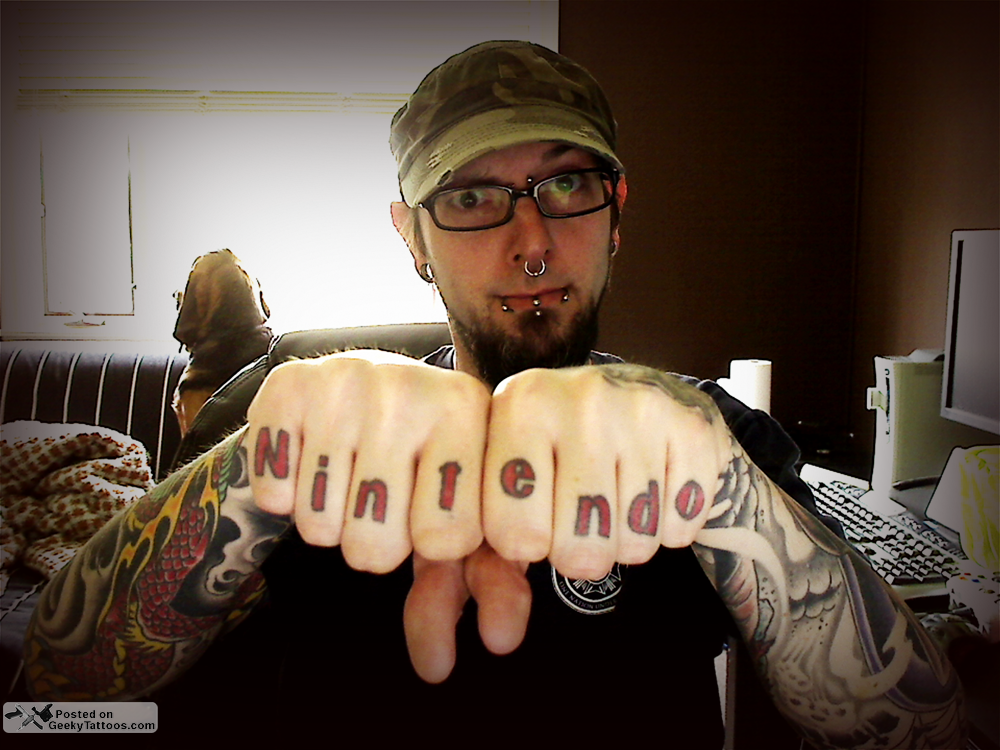 ..I knew I wanted something ridiculously nerdy so I put it to my friends on Twitter to give me an 8 letter, geeky word that best described me. My friend Liz came up with Nintendo and I knew she had the winner right then. As I was getting the tattoo done I realized I still had room for “SEGA” and “XBOX” on my lower knuckles for future tattoos – a win/win situation all around! How could I lose?