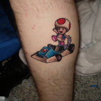 Jonathan sent in his two geeky tattoos of Darkwing Duck and Toadstool with his Kart from Mario Kart 64. Did you know you can get Darkwing Duck on DVD now?!