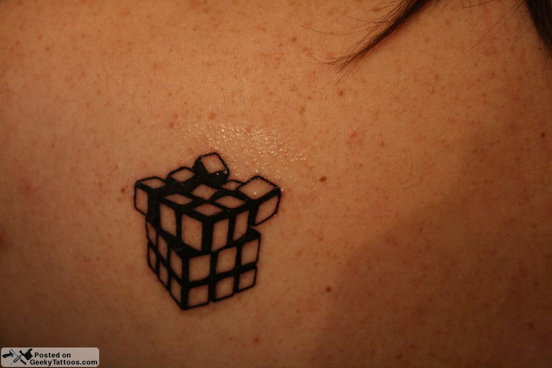 Xavier and his wife wanted to get tattoos, and he knew he wanted a Rubik’s Cube tattoo since he’s always been fond of them. After hunting for the right source image and giving up, he decided to design it himself in software. He says, “I decided to my the cube explode to represent the way you need to deconstruct it (in mind) to understand how to solve it.”