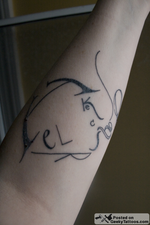 Allie, a graphic designer from Boston, sent in her tattoo of Sherlock Holmes complete with pipe and magnifying glass. What makes this extra special geeky is that it’s all done with the letters in his name with different fonts. Pretty awesome, eh?