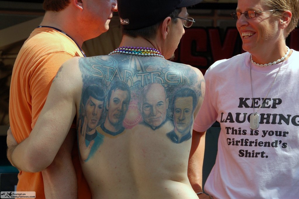 Isn’t the internet great? It gives everyone a voice and everyone uses that voice to bitch about something. I still don’t get why someone would care about what another person does to their skin. I have a tattoo of the com-badge on my shoulder as well as the borg insignia on my calf. I have a ton of other tattoos as well (including the insignia for the Jedi Order), but not all of them are geeky. But I still find it funny that some people would care at all if another person has a geeky tattoo. I mean, c’mon nerds have it right; science fiction, fantasy, video games, whats not to love?