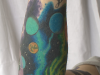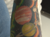 Steve is a chemist that has geek-ified his arms with tattoos. He started innocently enough with Batman, then added Joker and Harley Quinn to the Batman theme. Then his problem got serious. He had his artist, Chris Thompson at Slave to the Needle, draw up a Hitchhiker’s Guide to the Galaxy themed half-sleeve. He wanted something to combine Don’t Panic, 42, science, and space. There was a brief moment of panic when Chris the tattoo guy included the Earth in the design, but Steve calmly explained that Earth isn’t in the Hitchhiker’s Guide. Luckily Chris didn’t replace the Earth with a highway, but rather a cool explosion.