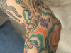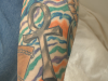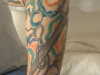 But Steve wasn’t done after getting the half-sleeve. Like many addictions, it’s hard to stop once you start. He had come to love Neil Gaiman’s Sandman comics and went back to Chris to design a sleeve based on the sigils of The Endless with Delirium as the background.